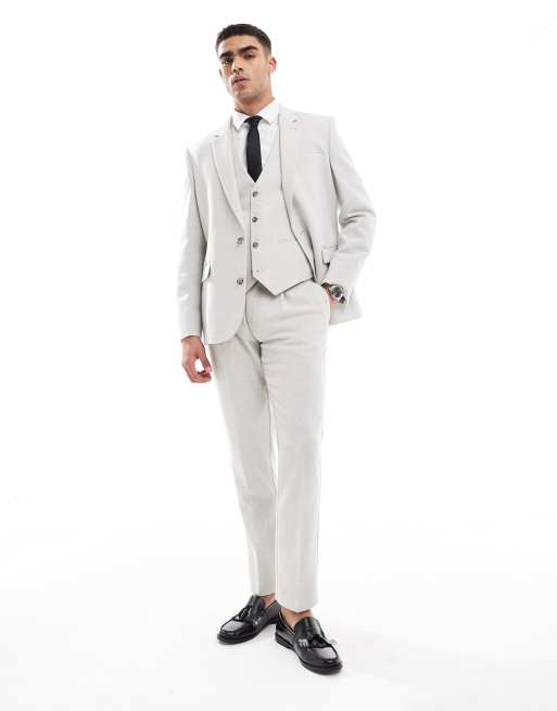 ASOS DESIGN - Smal pak van wolmix met visgraatmotief in ijsgrijs