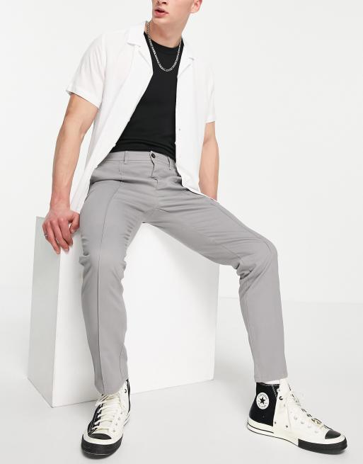 ASOS DESIGN - Smalle chino met plooien in grijs