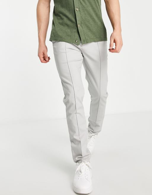 ASOS DESIGN - Smalle chino met plooitjes in lichtgrijs