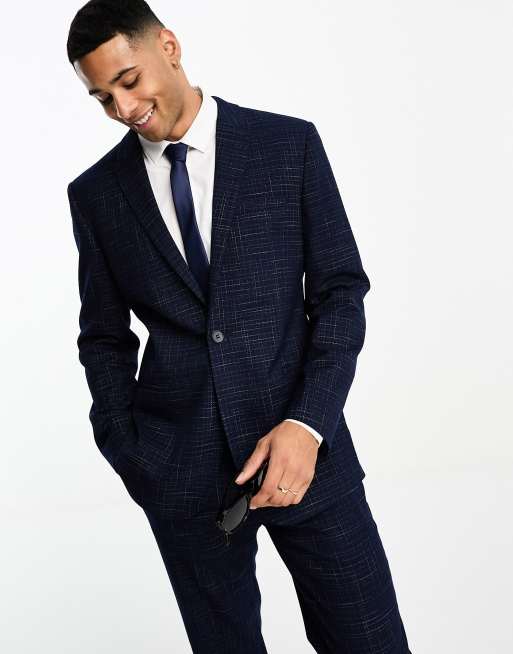 ASOS DESIGN - Smalle colbert met rasterruitjes in marineblauw