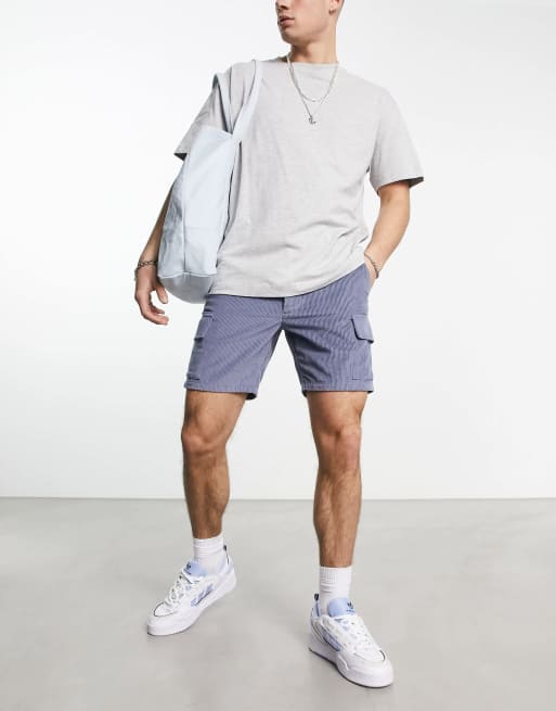 ASOS DESIGN - Smalle, halflange cargoshort van corduroy in grijs