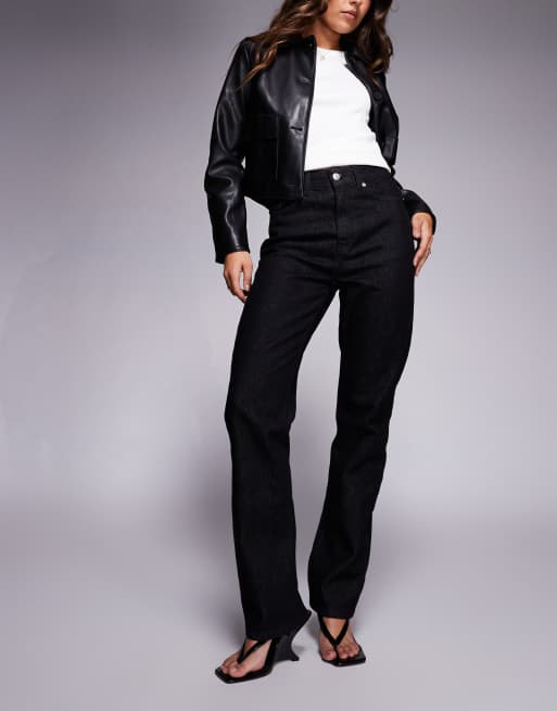 ASOS DESIGN - Smalle jeans met rechte pijpen en ultrahoge taille in effen zwart