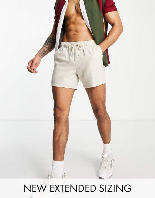 ASOS DESIGN - Smalle, kortere linnen short in beige