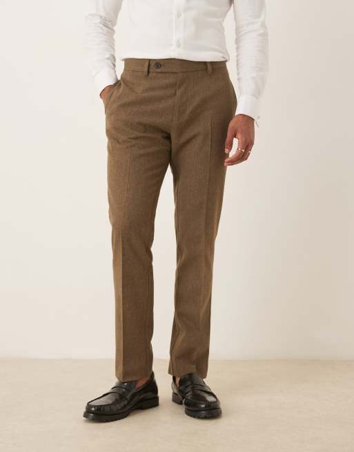 ASOS DESIGN - Smalle pantalon met wol in bruin