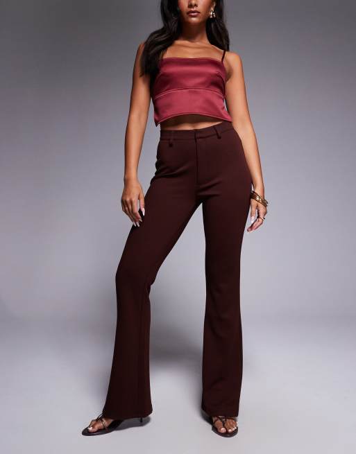 ASOS DESIGN - Smalle pantalon van jersey keperstof me uitlopende pijpen in chocoladekleur