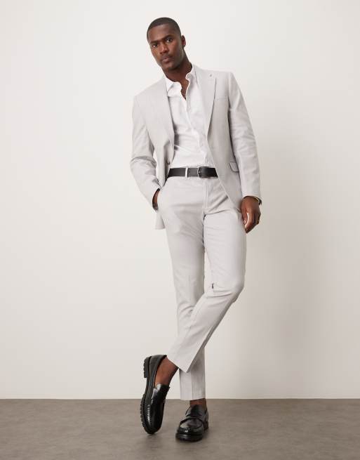 ASOS DESIGN - Smalle pantalon van linnenmix in grijs