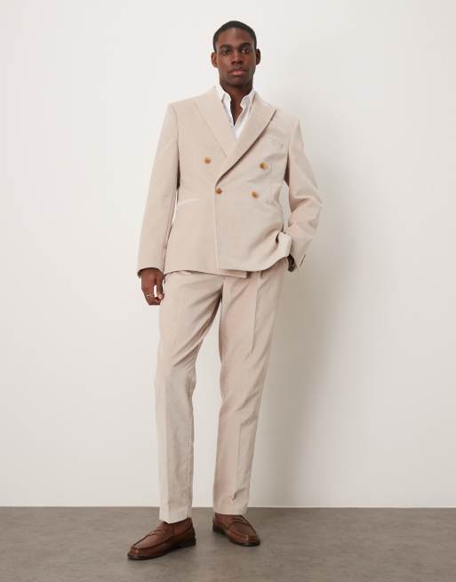 ASOS DESIGN- Smalle plooi pantalon van lichtgewicht katoen fluweel in stone