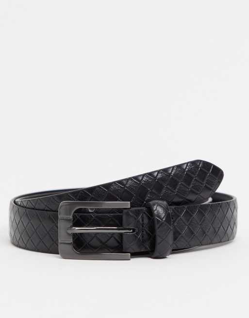 ASOS DESIGN - Smalle riem van imitatieleer met geweven motief in zwart
