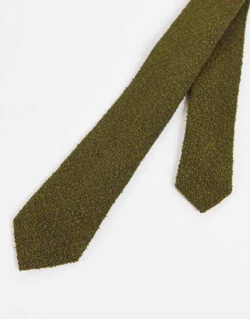 ASOS DESIGN - Smalle stropdas met kaki structuur