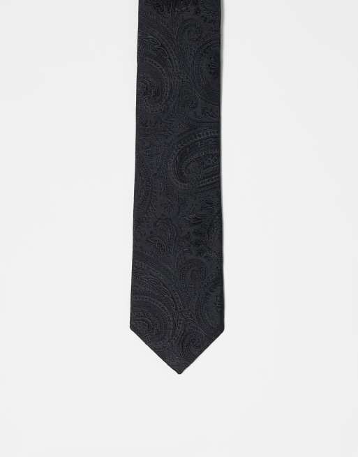 ASOS DESIGN - Smalle stropdas met paisley-motief in zwart