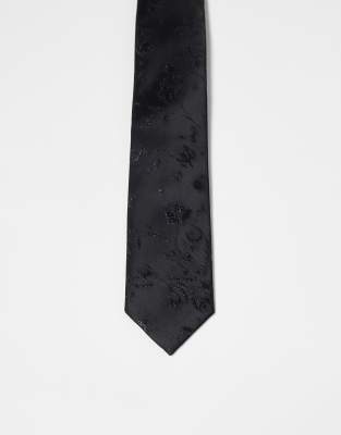 ASOS DESIGN - Smalle stropdas van satijn met patroon in zwart
