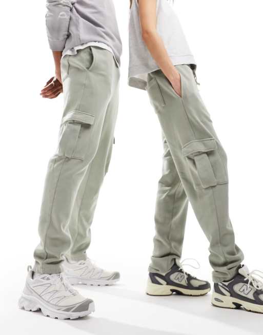ASOS DESIGN - Smaltoelopende uniseks joggingbroek met cargozakken in groen met wassing