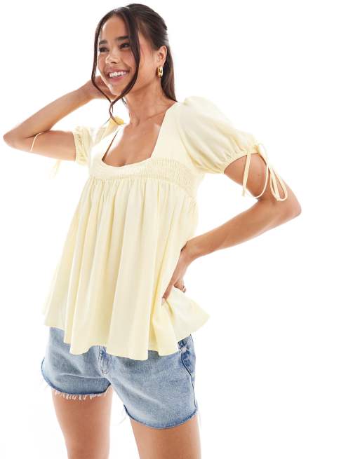 ASOS DESIGN - Smoktop van linnenmix in lichtgeel