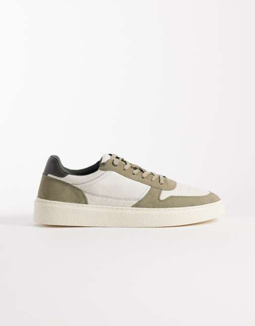 ASOS DESIGN - Sneakers met panelen in kaki suède en stone leer