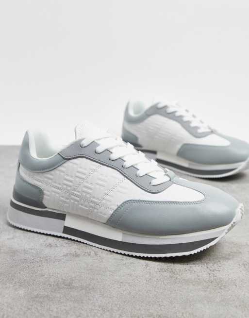 ASOS DESIGN - Sneakers met reliëf in wit en grijs