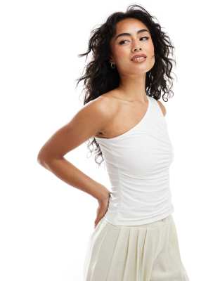 ASOS DESIGN - Soepelvallende top met rimpeleffect en blote schouder in ivoor