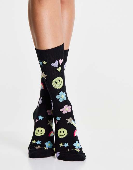 ASOS DESIGN - Sokken met 90s print in zwart