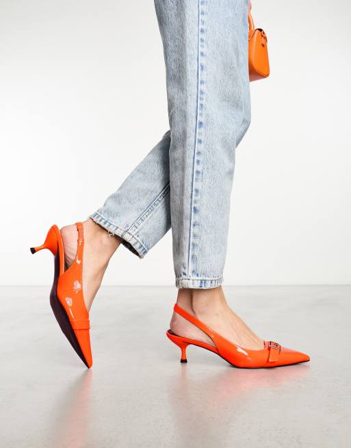 ASOS DESIGN - Soldier - Slingback schoenen met halfhoge hak en metalen accent in oranje
