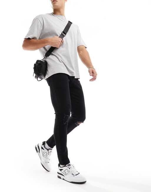 ASOS DESIGN - Spray-on jeans met powerstretch en scheuren in zwart