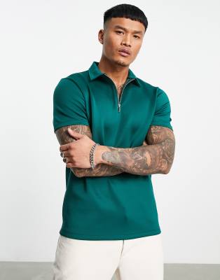 ASOS DESIGN - Standaard poloshirt van donkergroene scubastof