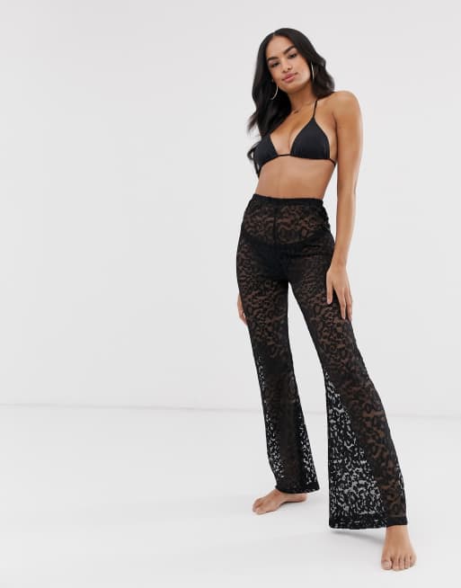 ASOS DESIGN - Strandbroek met flare-pijpen van jersey mesh met dierenprint