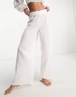 ASOS DESIGN - Strandbroek met wijde pijpen in wit, deel van co-ord set