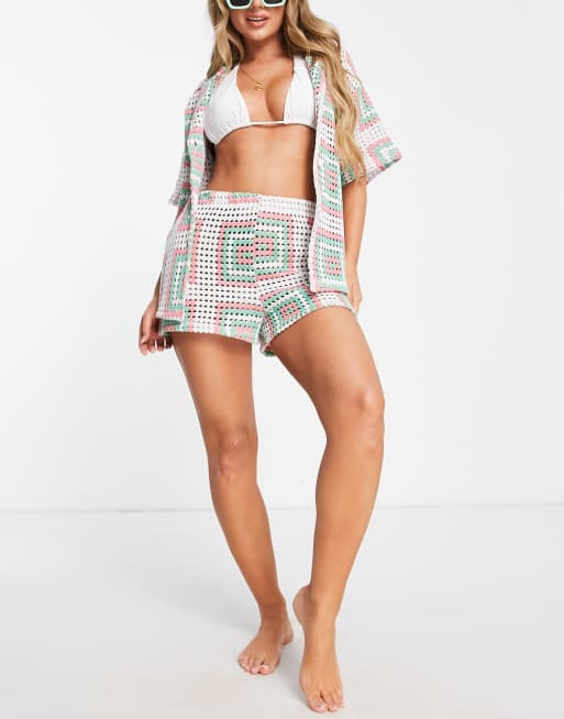 ASOS DESIGN - Strandshorts met gehaakt mozaïek, deel van co-ord set