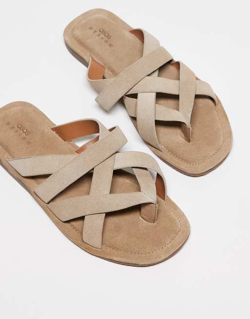 ASOS DESIGN - Suède sandalen met bandjes in stone
