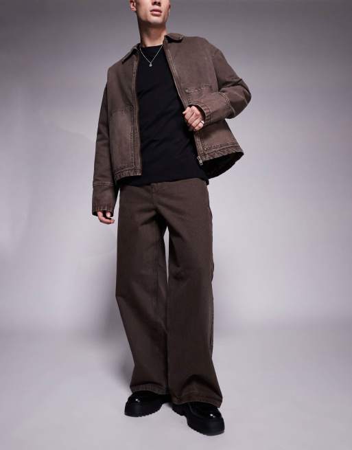 ASOS DESIGN - Super baggy broek in bruine keperstof