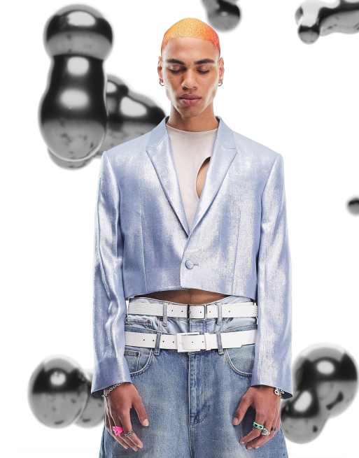 ASOS DESIGN - Super cropped metallic blazer in blauw
