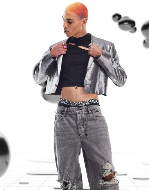 ASOS DESIGN - Super cropped metallic blazer in zwart