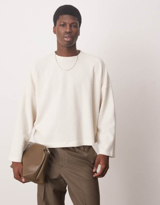 ASOS DESIGN - Super oversized cropped T-shirt met lange mouwen in gebroken wit