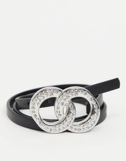 ASOS DESIGN - Super skinny heupriem voor jeans met sierstenen en dubbele cirkelsluiting in zwart
