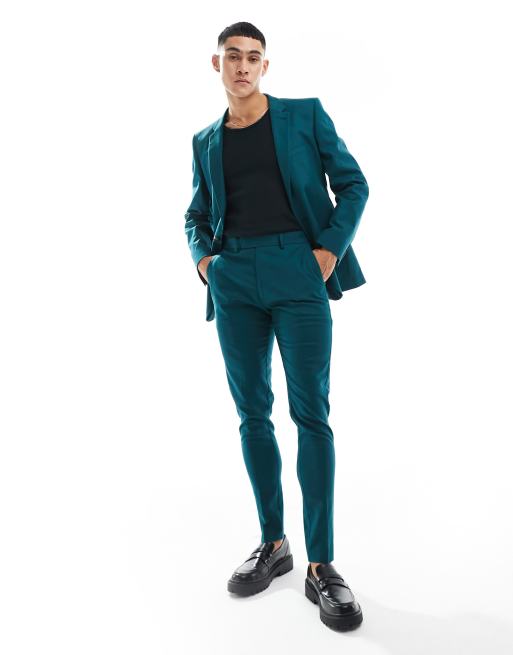 ASOS DESIGN - Super skinny pantalon met linnen in blauwgroen