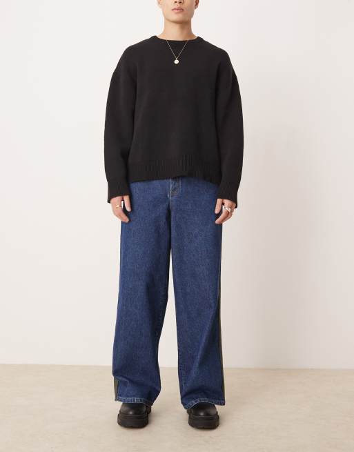 ASOS DESIGN - Superbaggy jeans in mid-wash blauw met zijstreep in kaki