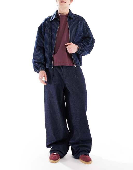 ASOS DESIGN - Superbaggy jeans met plooi en blauwe wassing