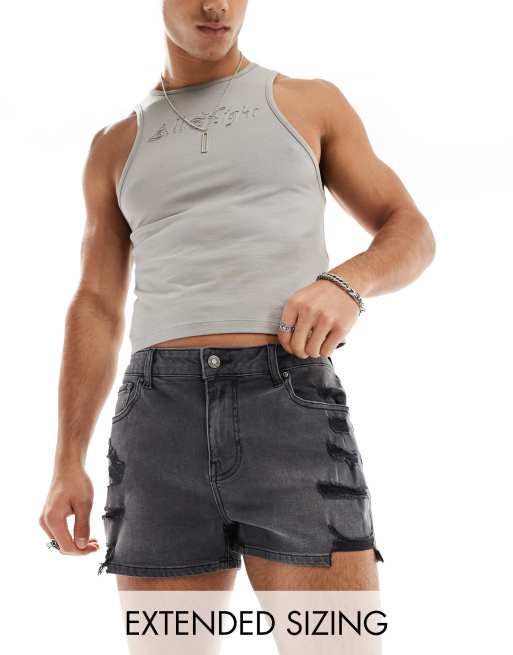 ASOS DESIGN - Superkorte skinny denim short met scheuren in zwart met wassing