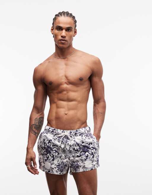 ASOS DESIGN - Superkorte zwemshort met drakenprint in wit