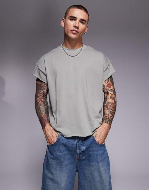 ASOS DESIGN - Superoversized recht mouwloos T-shirt van zware stof in kaki