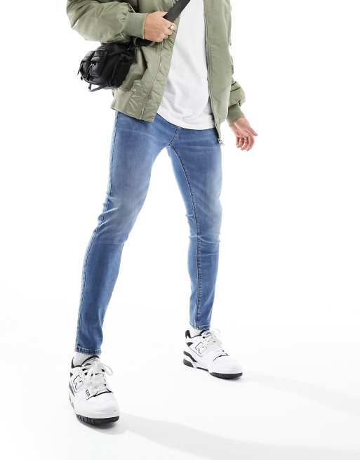 ASOS DESIGN - Superstrakke jeans met powerstretch in blauw met getinte mid-wash