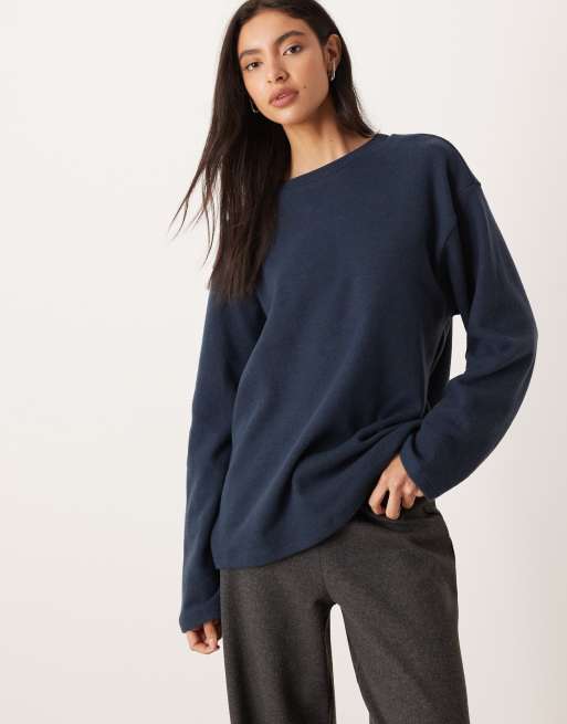 ASOS DESIGN - Superzacht skater-T-shirt met lange mouwen in marineblauw