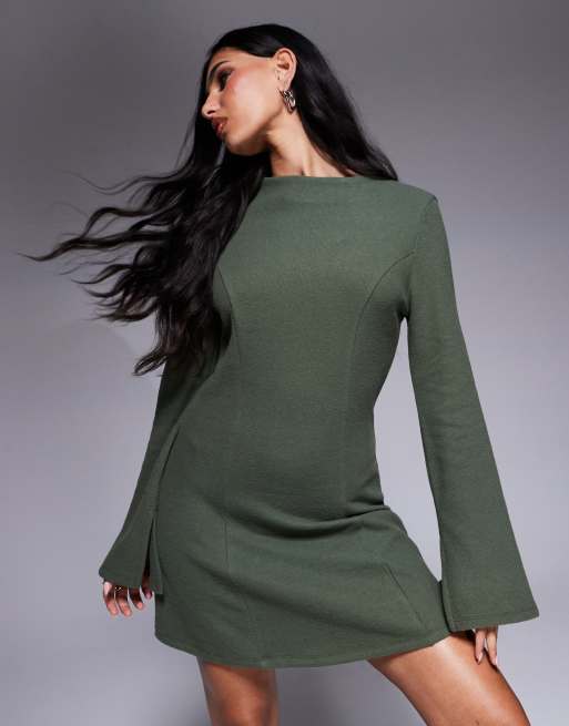 ASOS DESIGN - Superzachte fit and flare mini-jurk met opstaande boord in kaki