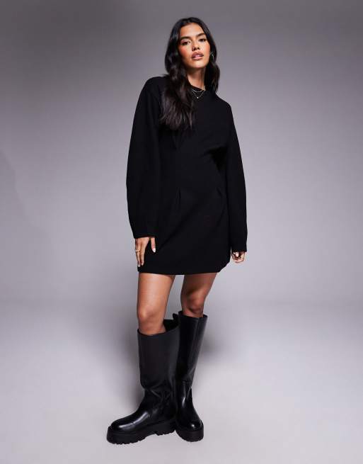 ASOS DESIGN - Superzachte getailleerde mini jurk in zwart