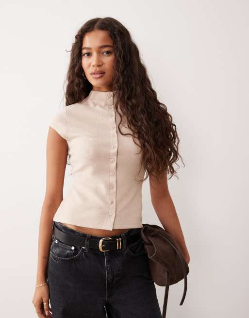 ASOS DESIGN - Superzachte hoogsluitende top met knopen in crème