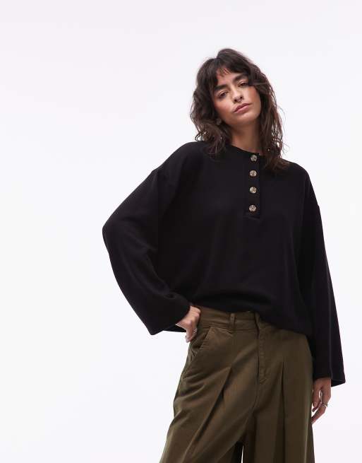 ASOS DESIGN - Superzachte oversized Henley top in zwart