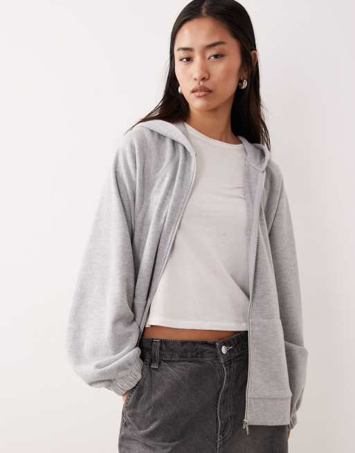ASOS DESIGN - Superzachte oversized hoodie met rits en raglanmouwen in grijs gemêleerd