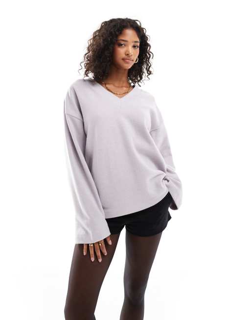 ASOS DESIGN - Superzachte oversized trui met V-hals in lila