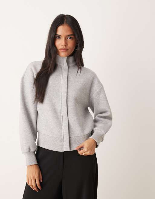 ASOS DESIGN - Sweatshirt met col en rits in gemêleerd grijs