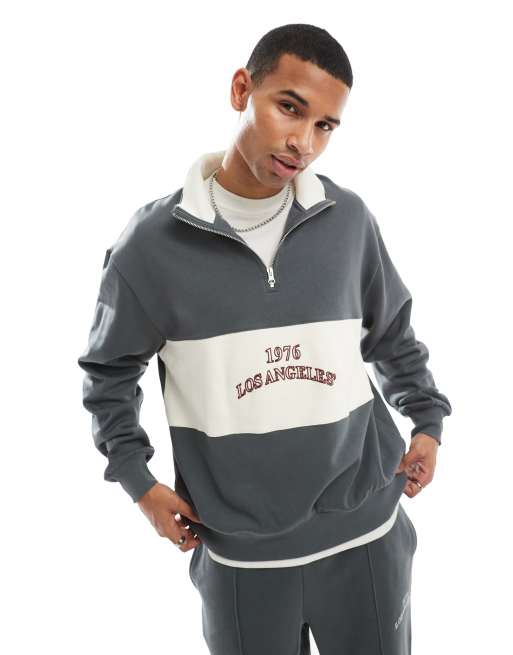 ASOS DESIGN - Sweatshirt met korte rits en contrasterende inzetstukken in grijs, deel van co-ord set