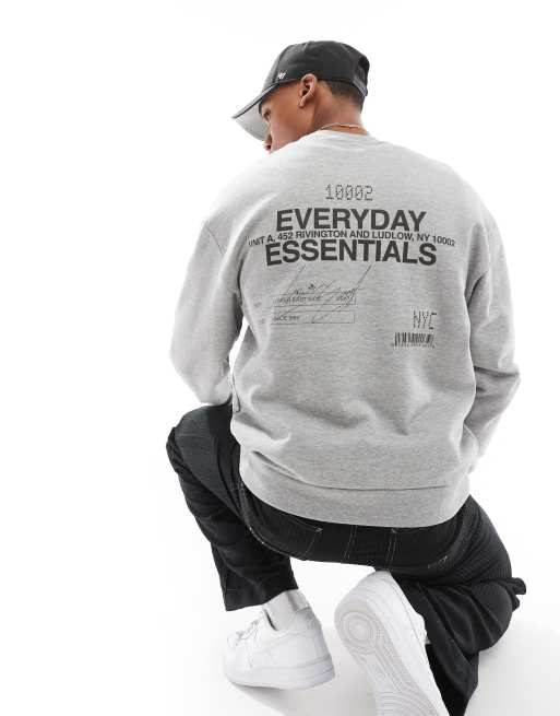 ASOS DESIGN - Sweatshirt met print op de achterkant in gemêleerd grijs